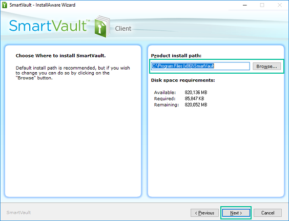 Proceed through the SmartVault Install Wizard. -